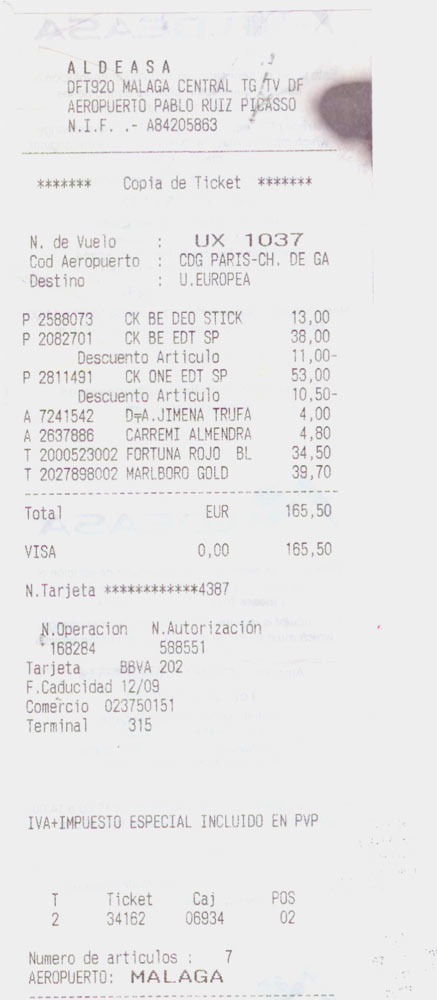 Ticket de Caisse duty free